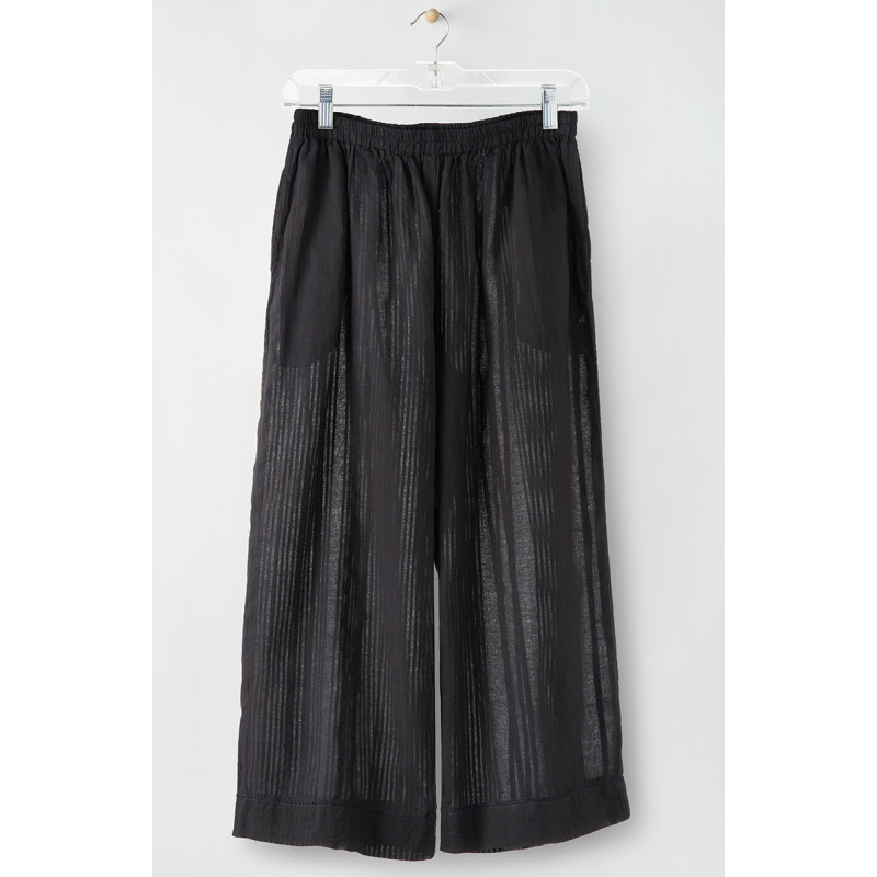 Our lightweight slightly-sheer cropped pant in a textured stripe. Perfect to layer under MarketPlace dresses and long shirts. Tonal hand embroidery accents at hem.