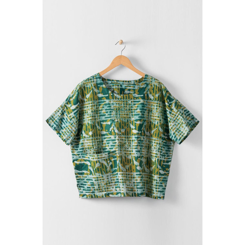 Shalini Popover Boxy Top - Dusty teal/Green tea