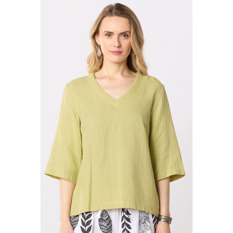 • Kochi Double Gauze V-Neck Top - Kiwi